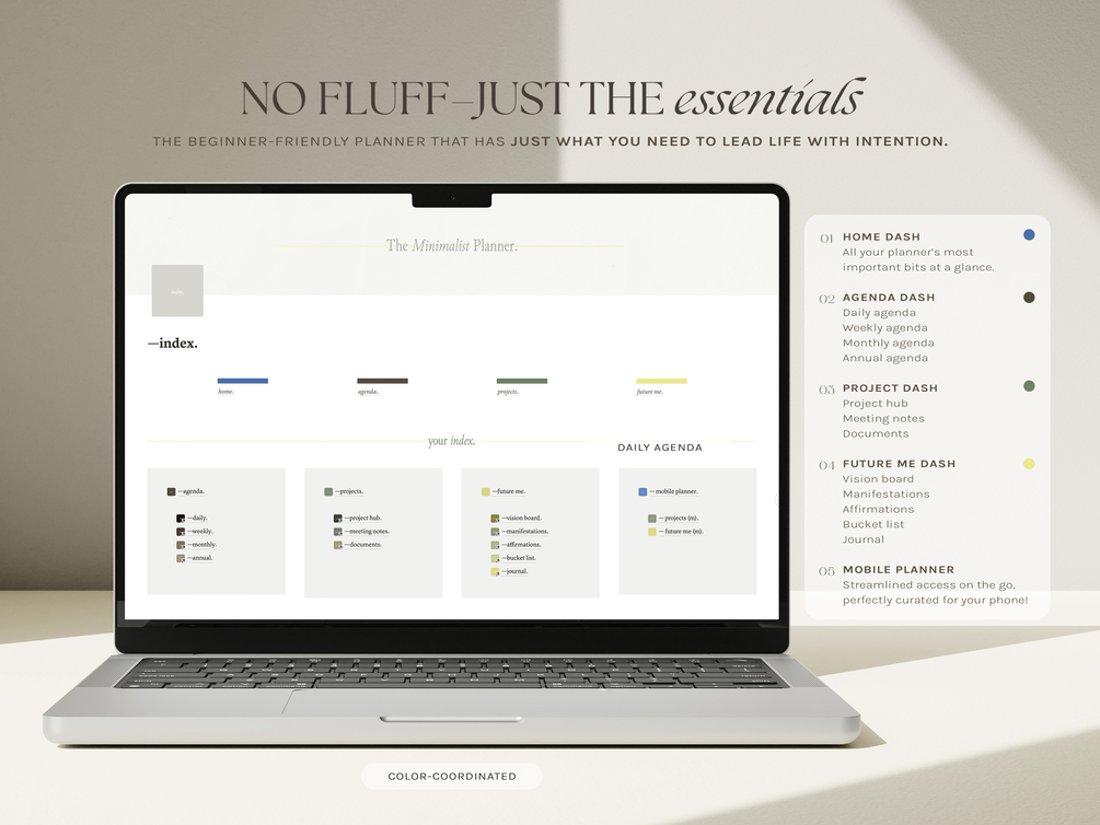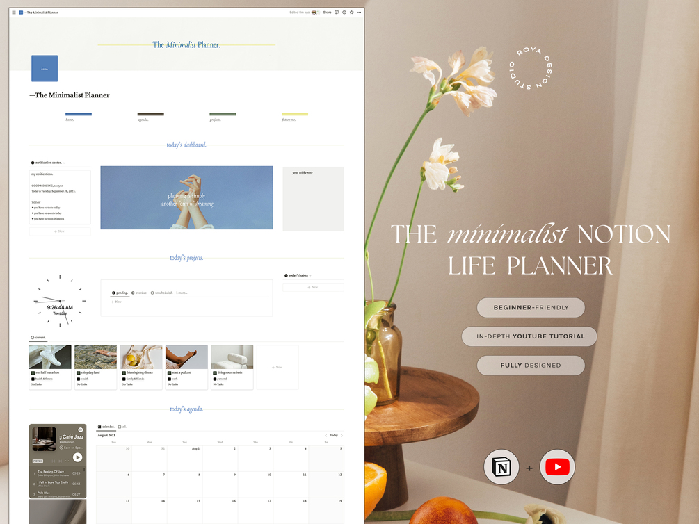 Discover the power of minimalism as we guide you step by step on your journey to a more intentional life. With just the essentials, we've stripped away the fluff to provide a purposeful tool that helps you efficiently organize your daily tasks, goals, and dreams for Notion newbies and experts alike.