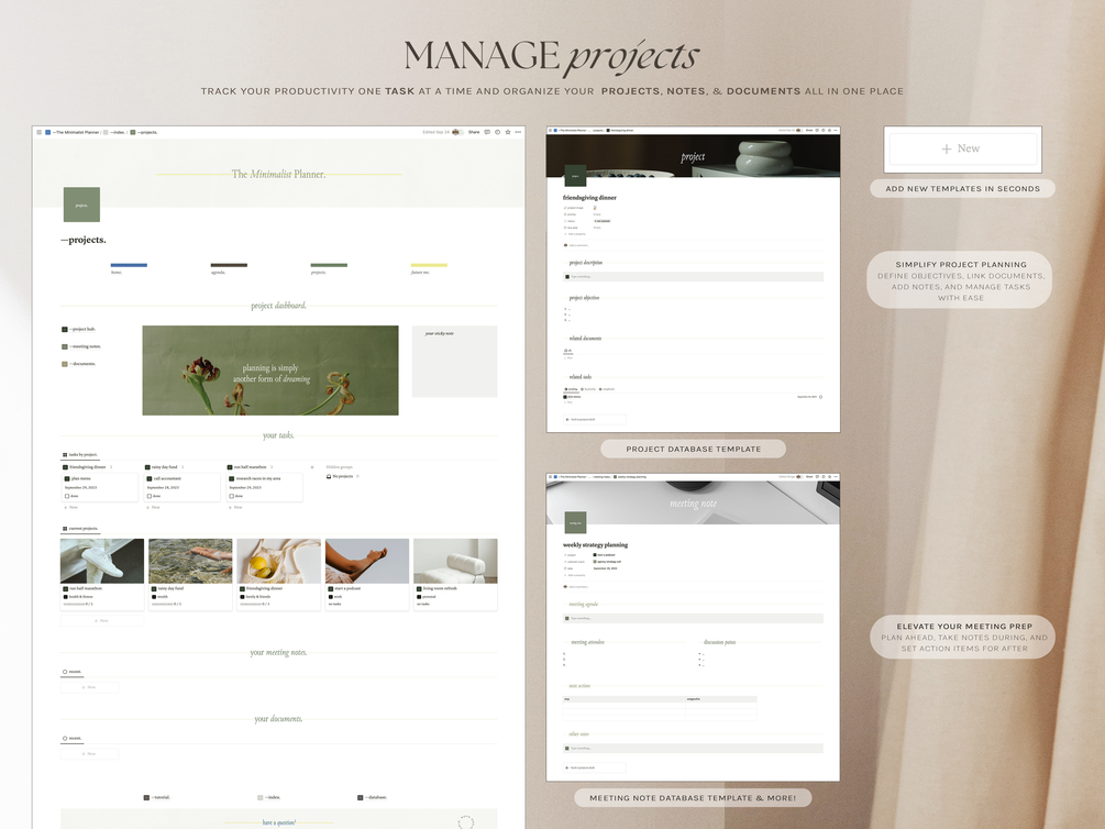 ✦Project Dashboard (project hub, meeting notes, and documents sections)